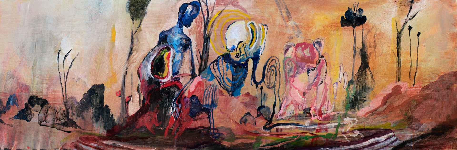 acrylic and spray on a 12 by 36 inch clayboard, for an upcoming show, and a gift to a friend.
